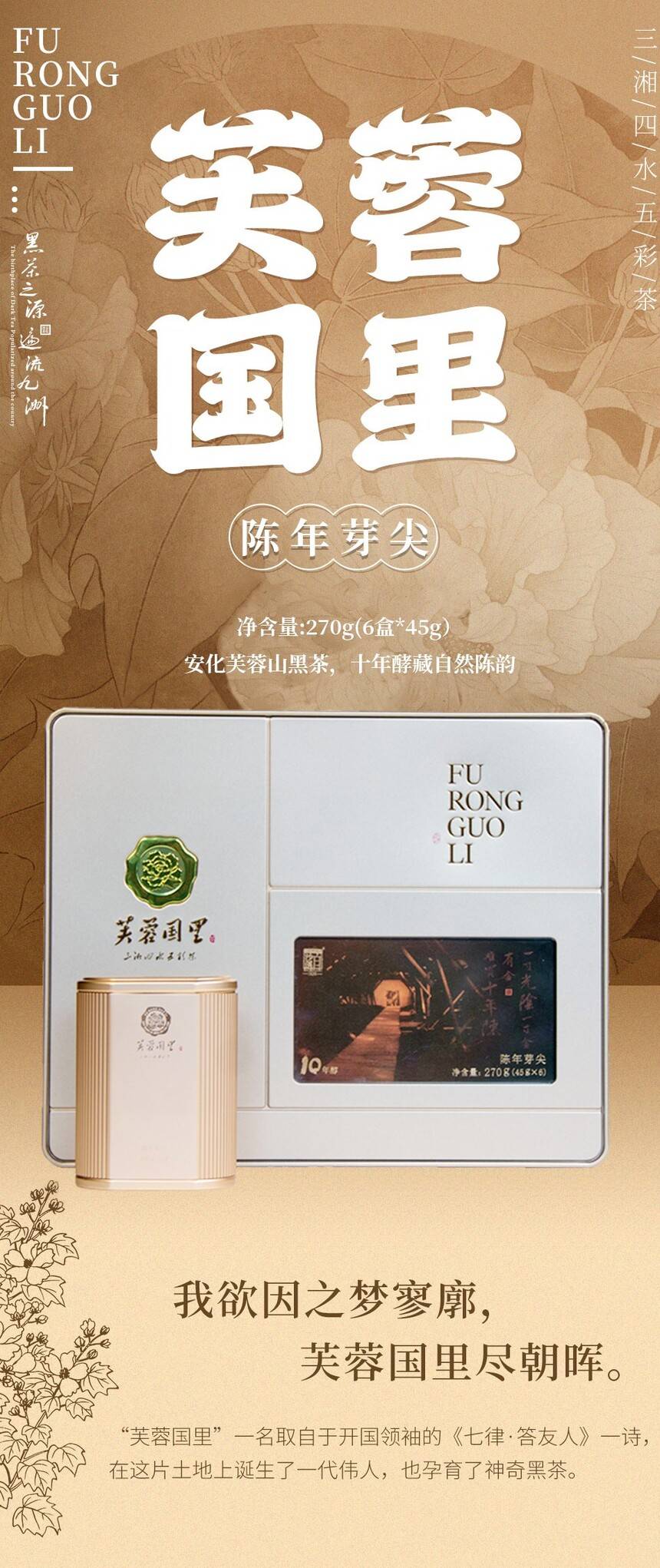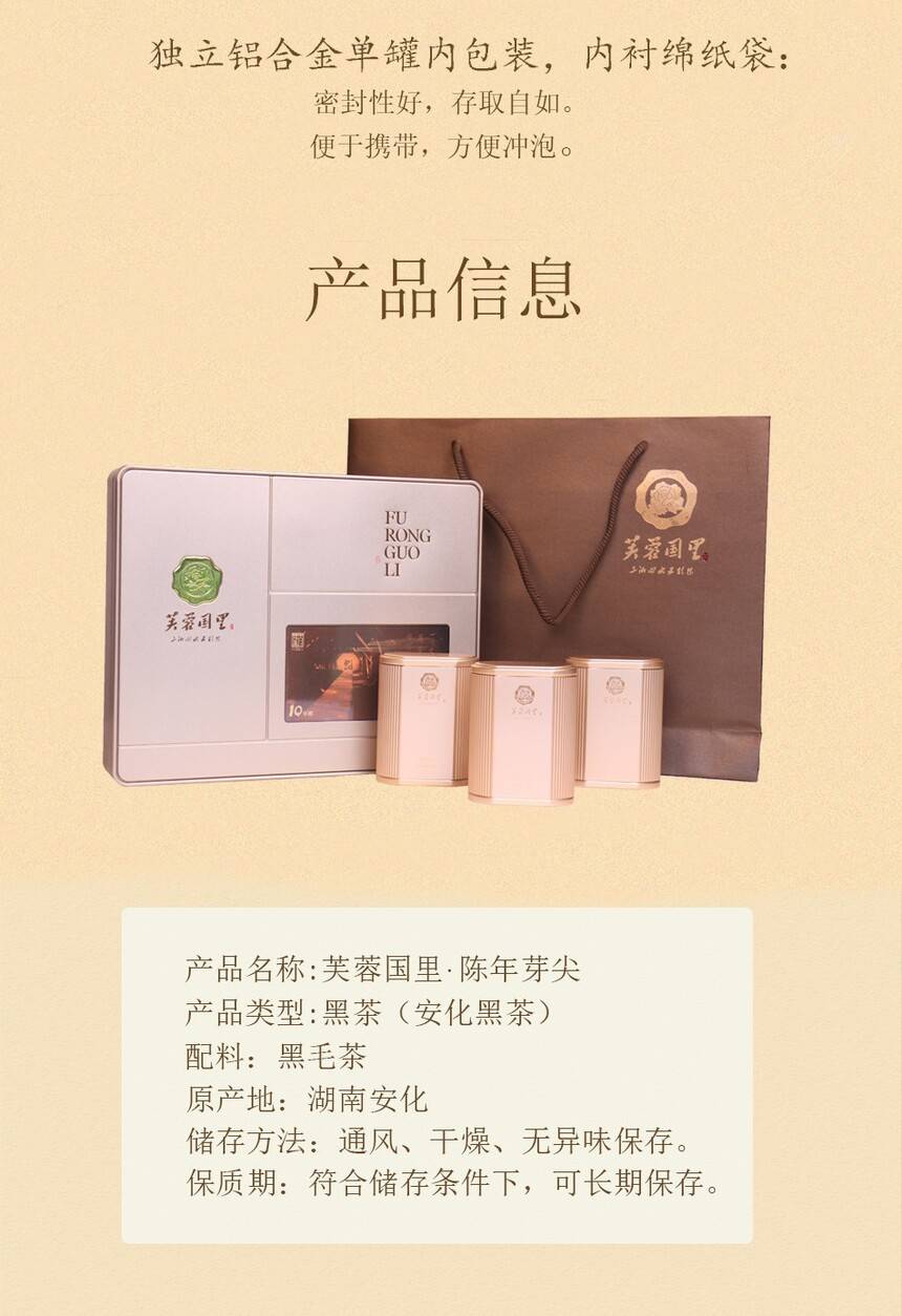 白沙溪安化黑茶湖南正品芙蓉國里十年陳芽尖茶黑茶270g禮盒裝[支持定制]