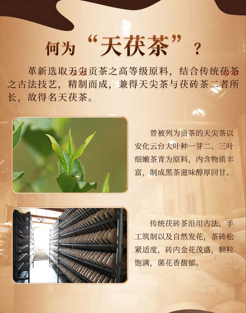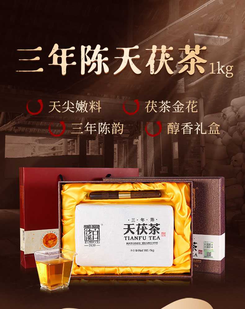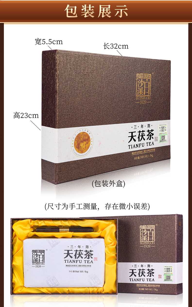 湖南安化黑茶白沙溪金花獲磚茶手工茶特產(chǎn)禮品茶三年陳天獲茶1kg