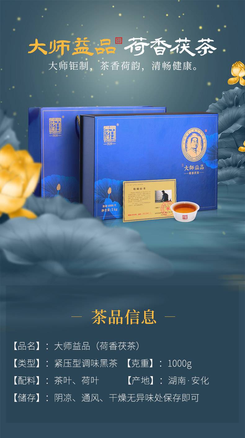 白沙溪湖南安化黑茶大師益品荷葉金花獲磚茶1kg